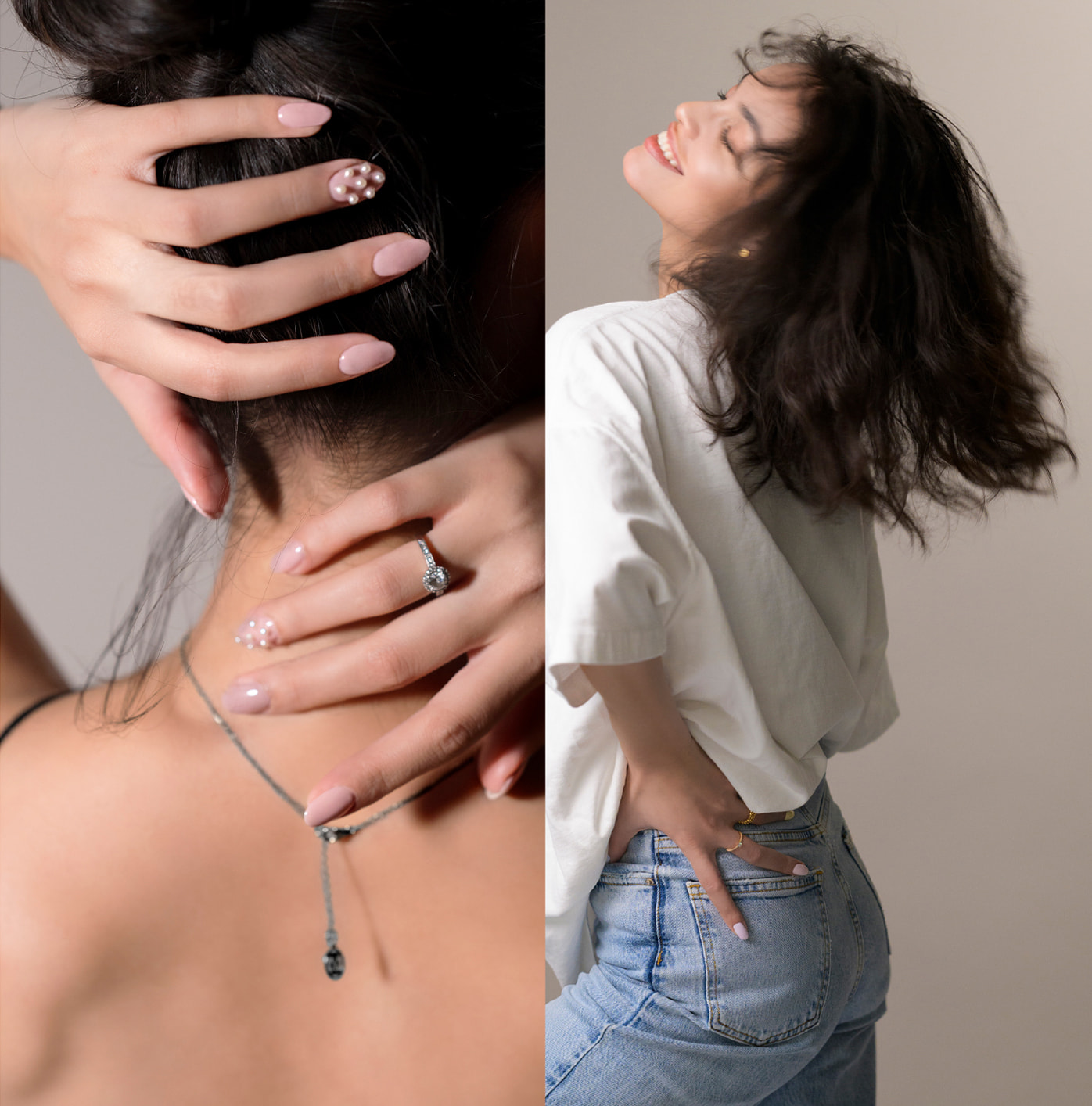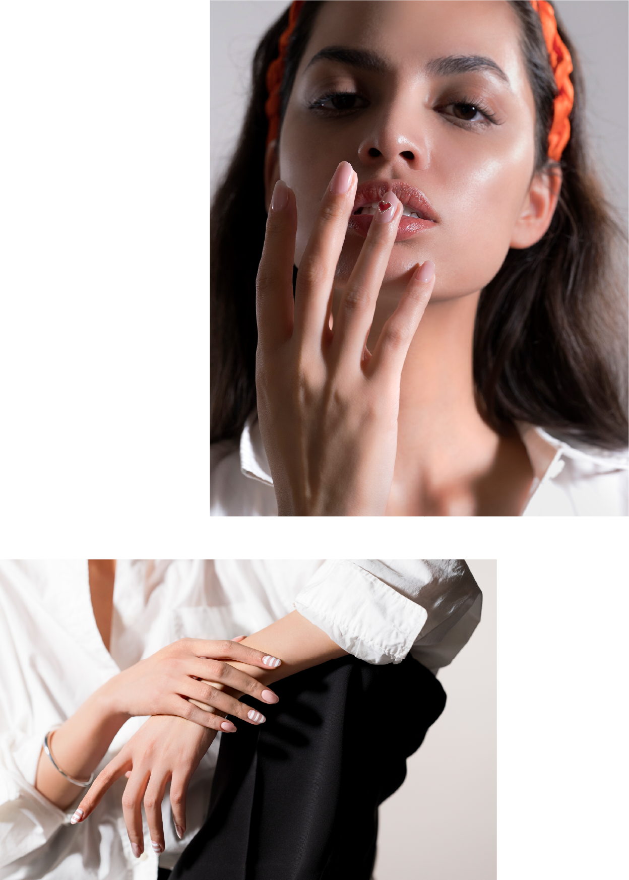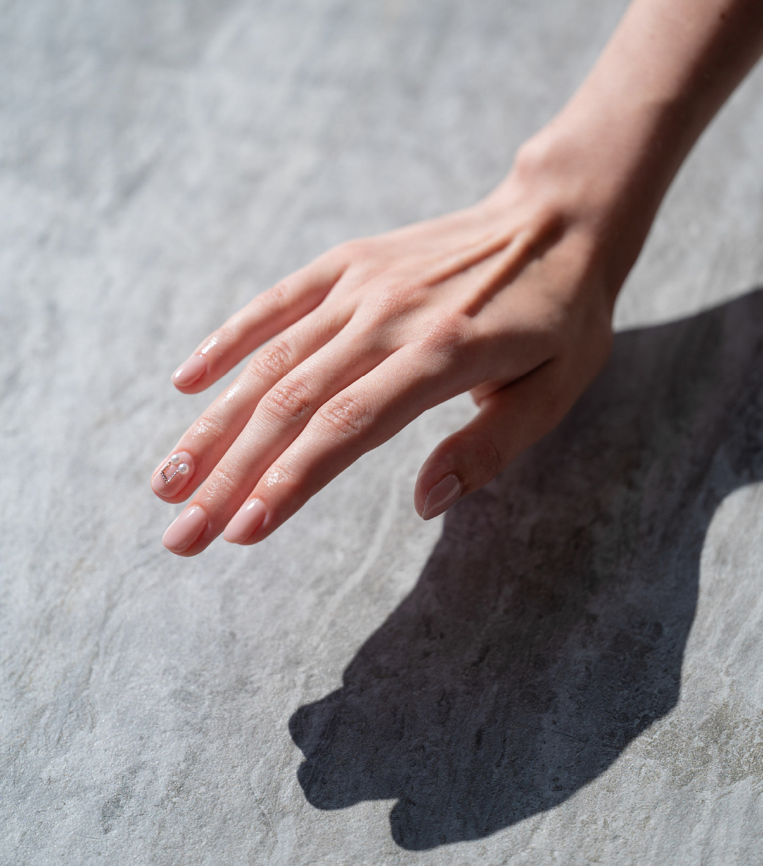 そんなネイルデザインを提供したいと考え、その実現に努めています。肌馴染みが良く素肌の美しさに好影響を与えるヌードカラーを採用し、カジュアルさも残しつつエレガントすぎない絶妙なバランスを表現。女性の手が最もキレイに見えるよう追求したデザインは遊び心のある王道。いつまでも価値のあるものとして残っていく奥深さを感じるブランドでありたい。ネイルチップも付属したコレクションブックはこれまでにない試み。ネイリストのデザインクオリティの担保と作業効率向上を実現できるクリエイティブツールとしてご活用いただくことを思い描いています。